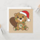 O castor no Natal com luzes de fadas. Animais engraçados com presentes e neve para as festas de fim de ano. Uma saudação de Natal doce. Castores são animais fofos e perfeitos para o Natal.