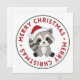 O guaxim para o Natal como cartão de saudação. Animais engraçados com presentes e neve para as festas. Também engraçado para o Natal em julho. Os guaxinins são animais fofos e perfeitos para o Natal.