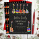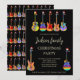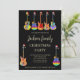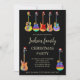 Convites de festa de Natal legais e psicodélicos com tema de Guitar Fest. Guitarras acústicas, guitarras elétricas e ilustrações de guitarra semi precisas, cada uma com um chapéu de Papai Noel engraçado em uma rocha preta de rock and roll. Personalize este convite de festa festivo colorido e legal e espalhe alegria natalina. Ideal para músicos, guitarristas e amantes da música. Arte original da artista Catherine Sweetman