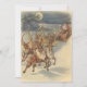 Ilustração vintage cena de Natal vitoriana alegre com Papai Noel e seus renas entregando presentes na véspera de Natal. Papai Noel está voando sobre a neve em uma noite fria de inverno com uma lua cheia no céu.