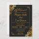Celebre seu dia especial com este convite de casamento muçulmano elegante, apresentando um design luxuoso em preto e dourado adornado com buquês florais em aquarela, folhas douradas e elementos botânicos pastéis suaves. Inspirado em temas vintage de creme de pérola, este design combina a elegância tradicional do Oriente Médio com um toque moderno e arejado, perfeito para uma celebração de Nikah ou Walima.