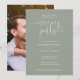 Este elegante convite de noite de casamento em verde sálvia pode ser personalizado com os detalhes da sua celebração definidos em tipografia sofisticada e foto no verso. Criado por Thisisnotme©