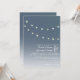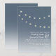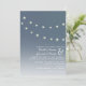 Um convite de casamento ao ar livre para a noite com uma ilustração de duas cordas de lâmpadas através de um céu noturno pontilhado de estrelas. Personalize o texto com suas informações.