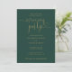 Este convite elegante de noite de casamento em verde esmeralda e dourado pode ser personalizado com os detalhes da sua celebração em tipografia sofisticada. Concebido por Thisisnotme©