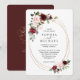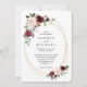 Rústico e elegante convite de casamento em tons de rosa blush e vinho borgonha com flores e moldura oval dourada. Seus convidados vão adorar este design único.