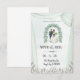 Convide seus entes queridos para o seu dia especial com este convite de casamento lindamente projetado. Com uma ilustração clássica em aquarela de uma noiva e um noivo sob um arco floral exuberante, este cartão exala elegância e romance. O layout minimalista proporciona uma aparência limpa, perfeita para uma celebração de casamento atemporal. Totalmente personalizável para incluir seus nomes, data e detalhes do local.