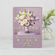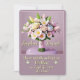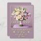 Um colorido buquê de flores pastéis colocado em uma mesa redonda. Um buquê de flores é um símbolo de amor e romance. A cor do fundo combina com as cores pastéis das flores. Cartão personalizável.