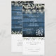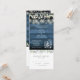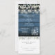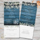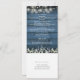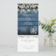 Um convite de noivado tudo-em-um apresentando folhagem de água-forte e lilás, luzes de corda bonitas e potes de pedra sobre um fundo de madeira azul rústica. O convite inclui um cartão de confirmação de presença que pode ser cortado e detalhes das informações dos convidados. Desenhado por Thisisnotme
