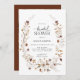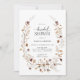 Convite de Chá de Noiva Elegante Boho Terracota de Flores Secas. Convite minimalista de guirlanda floral estilo boêmio com flores silvestres secas em tons terrosos elegantes e simples e elementos botânicos em aquarela impressa à mão. A cor de fundo laranja queimada é linda para chá de noiva boho e chá de noiva terracota. Convites simples e imprimíveis para chá de noiva de primavera, verão, outono e inverno.