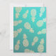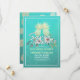 Modelos de Cartão de Convite de Casamento / Save The Date - Casal Abacaxi com Folhas em Ouro Falso Elegante sobre Fundo de Papel Damask Floral em Verde Teal e Azul Turquesa. Um Design Perfeito para o Seu Grande Dia. Todo o estilo, cores e tamanhos do texto podem ser modificados para atender às suas necessidades!
