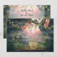 Este anúncio de noivado Save the Date apresenta um cemitério encantadoramente assustador. Há algumas lápides antigas com um fundo de árvores retorcidas decoradas com luzes de flores encantadoras e um belo céu rosa escuro.