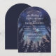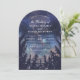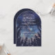 Crie uma primeira impressão mágica com este convite de casamento em arco celestial de noite estrelada. A forma única arqueada combinada com um céu azul profundo da meia-noite e estrelas brilhantes cria uma atmosfera cósmica romântica. Silhuetas da floresta adicionam um sentimento encantado de bosque perfeito para celebrações noturnas. Ideal para casamentos celestiais, temas de noite estrelada e cerimônias de floresta encantada. Este convite de arco elegante traz um visual moderno e atemporal para a papelaria do seu casamento. Combine-o com a coleção Starry Night Forest para um conjunto lindamente coordenado.