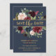Anuncie aos seus convidados que vocês estão se casando com este esplêndido, chique e elegante Convite de Noivado com Arranjo Floral em Tons de Azul e Merlot. Você pode adicionar seu toque especial personalizando este convite.