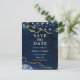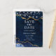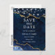 Cartão Postal de Convite de Noivado com Aquarela Elegante de Ágata Geodo de Mármore Azul e Dourado com Luzes