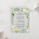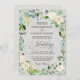 Um charmoso quadro floral pintado à mão com rosas brancas e folhagens rodeia o texto do convite do seu casamento. Exibido aqui sobre um fundo cinza-claro, é possível alterar a cor cinza para qualquer outra (inclusive branco), bastando para isso escolher "personalizar" e selecionar uma cor de fundo diferente.