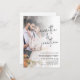 Convite de Noivado com Script de Sobreposição de Foto Moderna. Elegância minimalista, personalize facilmente o texto e substitua a imagem de exemplo pela sua.