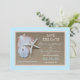 Procurando um convite de save the date com tema de praia? Não procure mais. Este convite de save the date moderno apresenta uma fotografia de uma estrela-do-mar, concha e dólar de areia sobre um fundo de aniagem. O design é rodeado por branco e pêssego e uma borda azul de praia. Você pode personalizar o design com seus nomes e datas importantes, juntamente com o local do seu casamento. Um lindo convite de casamento de praia save the date! Copyright henishouseofpaper