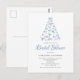 Celebre a noiva com este convite de chá de noiva de Natal moderno em formato de cartão postal, apresentando uma árvore de Natal rabiscada à mão feita inteiramente de laços azuis caprichosos. O layout minimalista e a fonte de letra elegante oferecem uma aparência limpa e contemporânea, perfeita para um chá de noiva de Natal com familiares e amigos. Totalmente personalizável com os detalhes da sua festa.