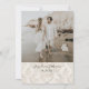 "Convite de Noivado Dourado em Damasco Marfim com Fotografia." A sua fotografia, nomes e data de casamento são apresentados no verso para que os seus convidados possam guardar e apreciar o seu anúncio para sempre. Elegante, padrão damasco neutro em marfim e bege com folhas e flores clássicas pintado pela artista e designer licenciada internacionalmente, Audrey Jeanne Roberts. Direitos autorais.
