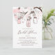 Convide os convidados para o seu evento com este convite de noivado personalizável. Ele apresenta alegres potes mason rosa claro, cordas de coração e flores. Personalize este convite de noivado em pote mason adicionando seus detalhes. Este convite de noivado personalizado é perfeito para noivados de primavera e inverno. Está disponível em outras cores e tipos de papel.