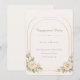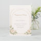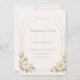 Tema de noivado de arco refinado em rosa suave e marfim quente, apresentando moldura de linha dourada, cantos florais delicados e letras serif limpas. Projetado para casais que hospedam uma celebração sofisticada em um local ou ambiente doméstico com um layout moderno e equilibrado.