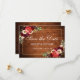Cartão de Convite de Noivado e Casamento Floral Boho Burgundy Marsala em Aquarela em Madeira Rústica