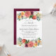 Celebre seu noivado cercado pelo calor do outono com este convite floral de outono borgonha rústico. Ricas flores de outono em tons profundos de vermelho e rosa claro enquadram uma caligrafia elegante em um fundo de madeira, criando uma atmosfera aconchegante e romântica para a festa de noivado. Totalmente personalizável com os detalhes do seu evento.