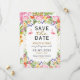 Lindo convite de noivado com ilustração em aquarela de dois flamingos rosa, flores vibrantes e confetes dourados. Este convite personalizável é perfeito para celebrações de casamento de verão / tropical / havaiano / luau!