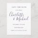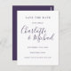 Com nomes de estilo exclusivo, este elegante cartão de save the date roxo pode ser personalizado com as informações do seu dia especial de casamento em letras elegantes. Criado por Thisisnotme©