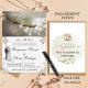 Surpreenda seus convidados com este cartão de convite floral branco com uma imagem de alianças de noivado e arranjos florais brancos nos cantos. Basta adicionar os detalhes do evento neste modelo fácil de usar para torná-lo único. Veja a loja para itens correspondentes