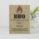 O convite para o CHURRASCO de verão apresenta um fundo de papel áspero com uma chama no topo. As letras "CHURRASCO" estão em letras grandes em negrito e são totalmente personalizáveis. Edite todo o seu texto!