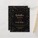 Um cartão de convite glamouroso para uma festa de formatura para ele e para ela. Um fundo preto decorado com estrelas douradas falsas. Personalize e adicione um nome, ano e detalhes da festa. O texto Graduação e o nome são escritos com um script de estilo moderno, escrito à mão. Texto colorido do ouro. Fundo: fundo preto e estrelas ouros. 1 folha = 1 convite impresso de borda a borda.