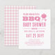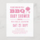 Prepare-se para dar as boas-vindas a um pequeno pacote de alegria com nosso convite para chá de fraldas de CHURRASCO com tipografia rosa e gingham rosa inverso. É muito fácil personalizar com seus próprios detalhes, fazer um convite especial e exclusivo para seu chá de fraldas.