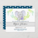 Gênero Chamadas de chuveiro de bebês de temas neutros com uma doce ilustração de elefante desenhada por Valarie Wade. Há tons claros de rosa e azul no elefante. Este pequeno elefante giro um coração roxo sombreado. Folhas multicoloridas num gradiente amarelo a azul estão sobre o fundo. O modelo fácil de ajustar permite personalizar os convites para torná-los seus próprios.