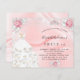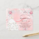 Um convite moderno, elegante e glamoroso para uma festa de Sweet 16, aniversário de 16 anos. Um cetim rosa corado, impressão de seda como fundo, decorado com purpurina prateada falsa, uma tiara e um vestido e flores rosa e branco. O nome é escrito com um estilo de letra manuscrita moderna. Personalize e adicione os detalhes da sua festa.