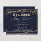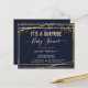 Elegante borda falsa dourada com destaques de confetes cintilantes na borda superior. Todo o texto é ajustável e fácil de alterar para as necessidades da sua festa. Ótimo modelo de design para chá de bebê surpresa.