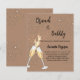 Um convite moderno, na moda e glamouroso para um Chá de panela de bolinho. Uma terra poeirenta colorida com bolhas, um par de flautas, óculos. O nome é escrito com um moderno estilo escrito à mão. Personalize e adicione os detalhes da sua festa. 1 folha = 1 convite impresso de borda a borda