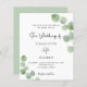 Um fundo branco decorado com cinzas de eucalipto verde. Personalize e seu nome e detalhes da cerimônia. Letras pretas coloridas. Fundo verde. Adicione sua própria url ao seu site de casamento para RSVP on-line ou para obter mais detalhes.