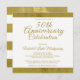 Celebração de Aniversário de 50 anos Convite Dourado. Convide familiares e amigos para uma celebração especial dos 50 anos de casamento com este cartão dourado e branco projetado com texto e listras na cor dourada. O texto inclui: Celebração dos 50 anos de Casamento, O Nome do Casal, A Data, Hora e Local, seu RSVP e Detalhes do Anfitrião. Para personalizar, basta inserir seu texto em nosso modelo fácil, substituindo a amostra. Nota: Este convite está disponível para impressão ou download.