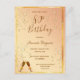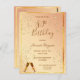 Convite de festa de 80 anos elegante e glamoroso. Cor de fundo ombre dourado e dourado rosa com uma moldura simples e fina em dourado falso. Decorado com bolhas de champanhe festivas e um par de óculos. Letras douradas escuras. O título: 80º Aniversário e o nome é escrito com letras manuscritas modernas.