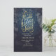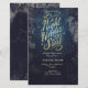 Convite de Panfleto Uma Noite Sob as Estrelas com tipografia manuscrita elegante de “Uma Noite Sob as Estrelas”. Este design inclui elementos de azul escuro, dourado e um fundo de noite estrelada. Inclui um modelo para personalização.