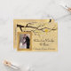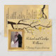 Celebre um aniversário de casamento de cinquenta anos com este adorável convite de modelo de foto. Este design retrata uma árvore com folhas douradas, pássaros de amor e uma moldura para uma foto do casal comemorativo pendurada nos galhos. O verso do convite tem espaço de sobra para informações de celebração. Design vetorial original de Night Owl's Menagerie, 2015.