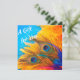 Elegante e design de presente de na moda apresenta tipografia da escrita de rico em penas vívidas de pavão acima de montanhas de penas cor amarelo-laranja sobre fundo azul, Se você ama beleza, vai adorar isso! Uma escolha perfeita para aniversários ou qualquer evento, esses cartões são duplos. Adicione este design de seleção fantástico à sua decoração ou roupas. Este design também está disponível em muitos outros produtos. Entre no meu compro e descubra todas as minhas criações originais e compre hoje. Encontre mais produtos por mim aqui: https://www.zazzle.com/store/badrran/collections ou https://www.zazzle.com/collections/invitation-119400656304193194