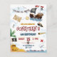 Este convite de aniversário temático de pirata apresenta um navio pirata, âncora, baú do tesouro escondido com gancho de pirata e tudo o que pertence à verdadeira festa pirata. Tipografia moderna "Ahoy matey" e "join us for the parrrty". Todo o texto é editável neste cartão-postal econômico e convites de aniversário de futebol também estão disponíveis! Encontre itens correspondentes na minha loja. Este design é para qualquer idade, neutro em termos de gênero e totalmente personalizável para o 1º e 2º aniversário e crianças mais velhas.