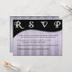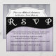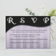 Este RSVP moderno certamente impressionará todos na sua lista de convidados com seu design atraente. Grandes áreas de texto na frente e no verso podem colocar todos os seus detalhes nas mãos dos seus convidados. O esquema de cores deste design é facilmente alterado selecionando o fundo (via opção 'Editar') e escolhendo a cor que você gosta. Se preferir, há outra versão deste design com letras douradas no cabeçalho.