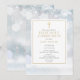 Com flocos de neve de inverno e um elegante crucifixo dourado, este convite de primeira comunhão sofisticado pode ser personalizado com as suas informações especiais. Concebido por Thisisnotme©