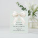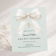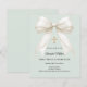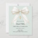 Um fundo verde sage pálido e suave, decorado com um grande laço com pérolas e uma cruz dourada. Personalize e adicione um nome e detalhes.