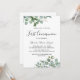 Marque essa ocasião sagrada com elegância e graça. Este convite de Primeira Comunhão de meados do verão apresenta um design botânico exuberante com eucalipto aquarelado pintado lindamente e folhas verdes vibrantes. Perfeito para uma celebração refinada e sentida.