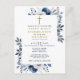 Convite de Primeira Comunhão Floral Azul Marinho