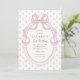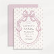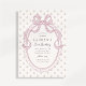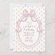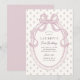 Convite de primeiro aniversário elegante com uma delicada estampa floral e uma moldura de laço rosa em estilo antigo. O design oval rendilhado e os detalhes botânicos atemporais criam uma aparência refinada e rústica, perfeita para festas de primeiro aniversário clássicas e celebrações inspiradas no vintage. Uma escolha encantadora para um convite de primeiro aniversário com laço floral e um toque suave e tradicional.
